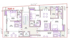 - 1 Flat in 2nd Floor 2397Sq.Ft (S1) (3 Bedrooms with attached Toilet and One Study Room)